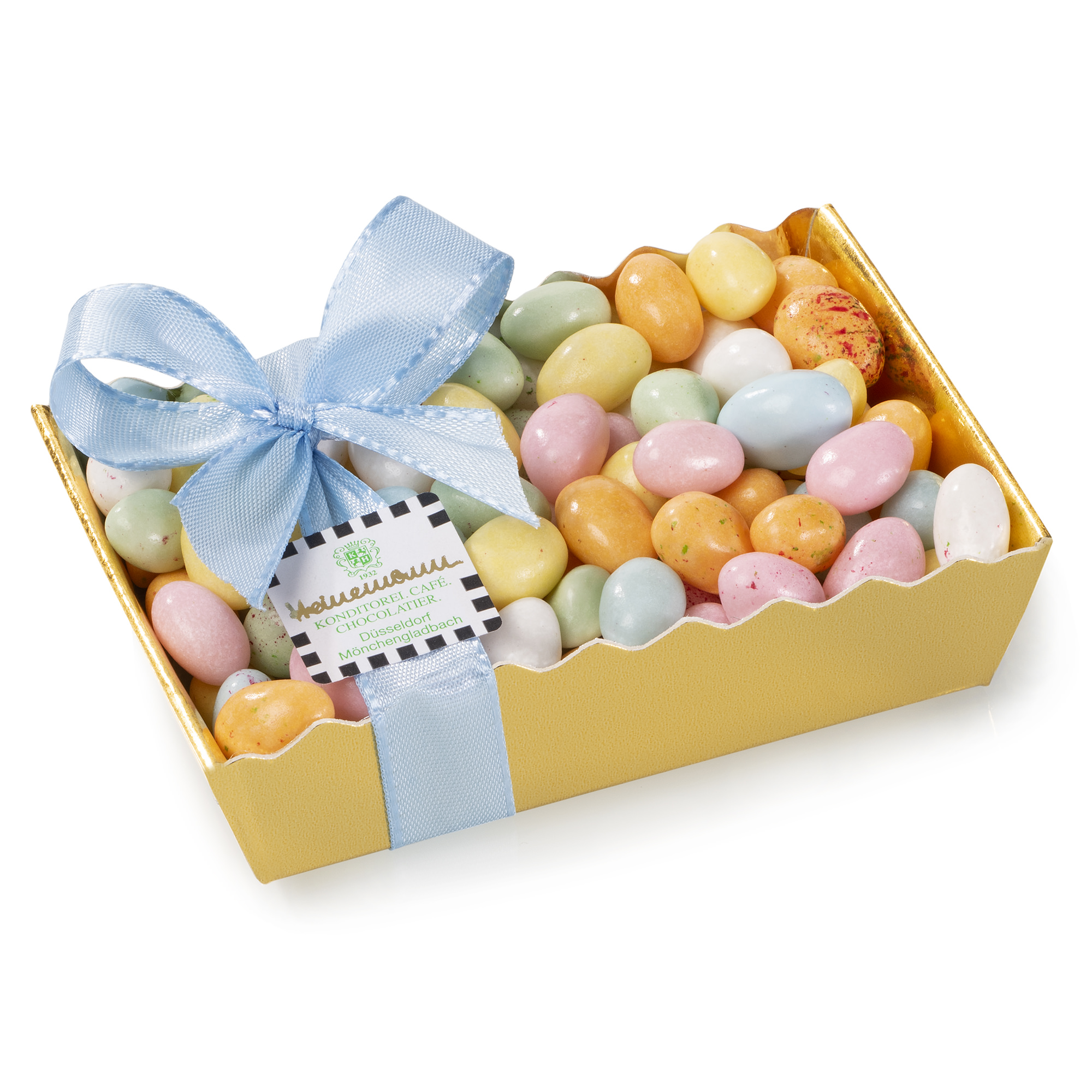 Zutaten: Zucker, Verdickungsmittel: Gummi arabicum, Glukose, natürliche Aromen, Farbstoffe: Kurkumin, Echtes Carmin, Brillantblau FCF, E141II, Überzugsmittel: Bienen- und Camabawachs Kann Spuren von HASELNÜSSEN und MANDELN enthalten