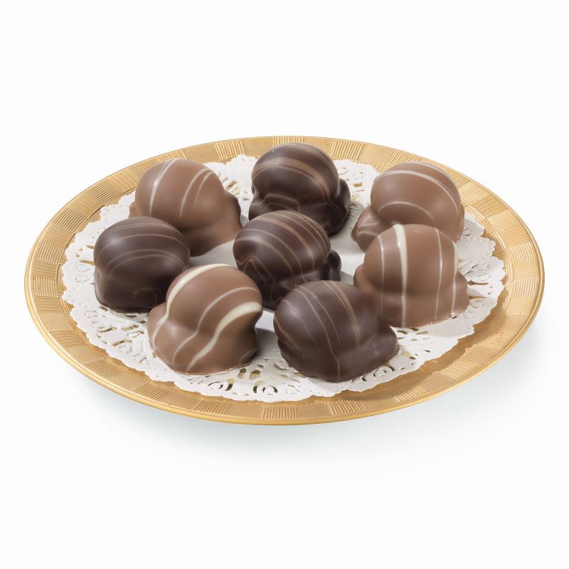 Zucker, SAHNE, Edelkakao, BUTTER, Kakaobutter, VOLLMILCHPULVER, Alkoholdestillat, Traubenzucker, WEIZENMEHL, MANDELN, Orangeat, Gewürze, Emulgator: SOJALECITHIN, Rum, MILCH, Feuchthaltemittel: Sorbitsirup, Backtriebmittel: Ammonium- u. Natriumbicarbonat, Vanille
